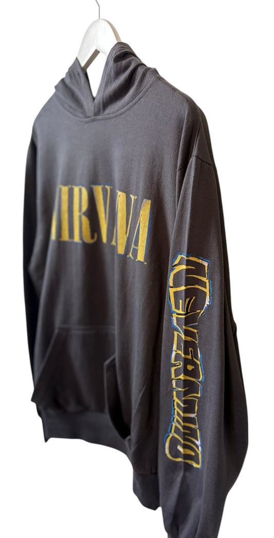 Nirvana Unisex Grey Hoodie Grunge Band Graphic Print Size L
