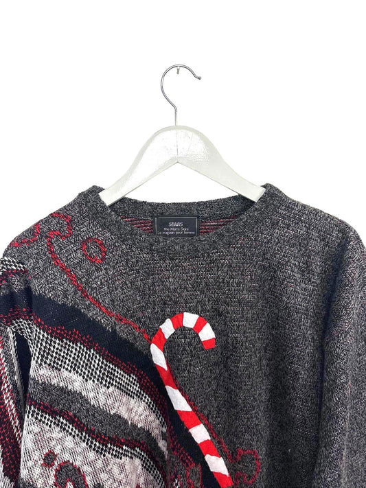 Vintage Sears Women's Unisex Sweater Christmas Candy Cane Grey Red Medium