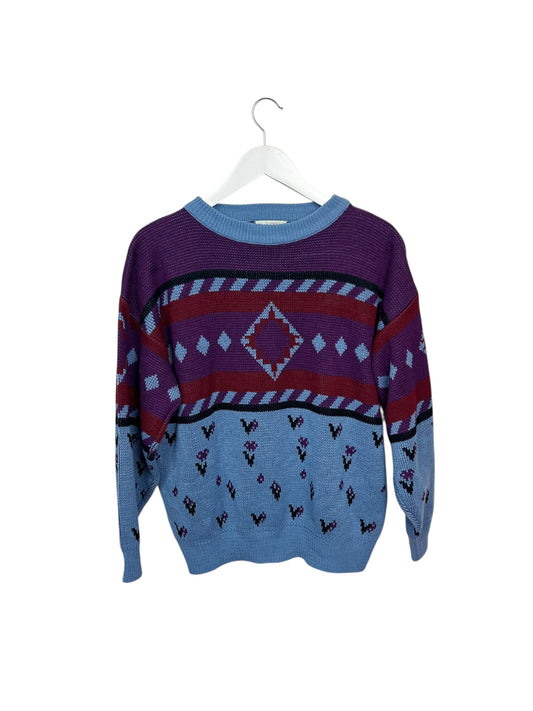 Château Unisex 80s Purple Geometric Knit Crewneck Acrylic Sweater M