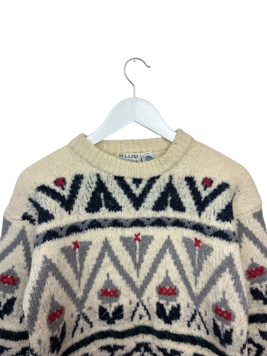 Vintage Bellini Australia Womens Cream Geometric Pattern Wool Crewneck Sweater M