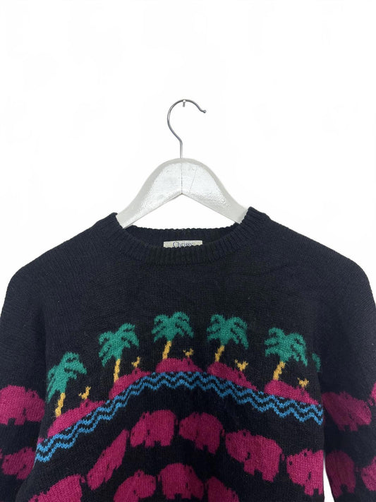 Vintage Chrissy Norman Womens Crew Neck Sweater Hippo Palm Tree Pattern Small