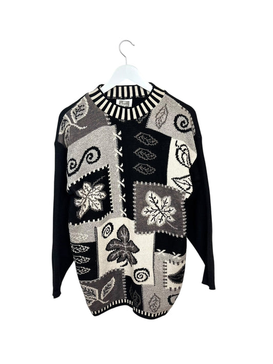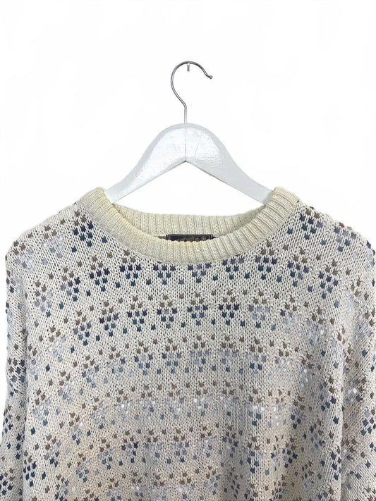 Vintage 90's Crescendo Women's Textured Multicolour Pattern Knit Sweater Medium