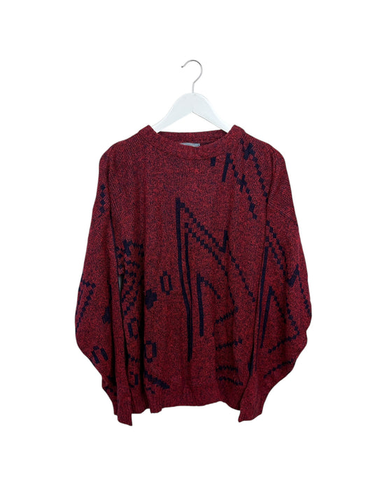 Vintage 80s Le TIGRÉ Unisex Red Geometric Knit Crewneck Sweater Size L