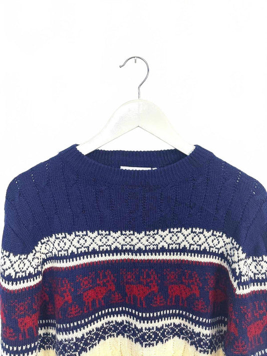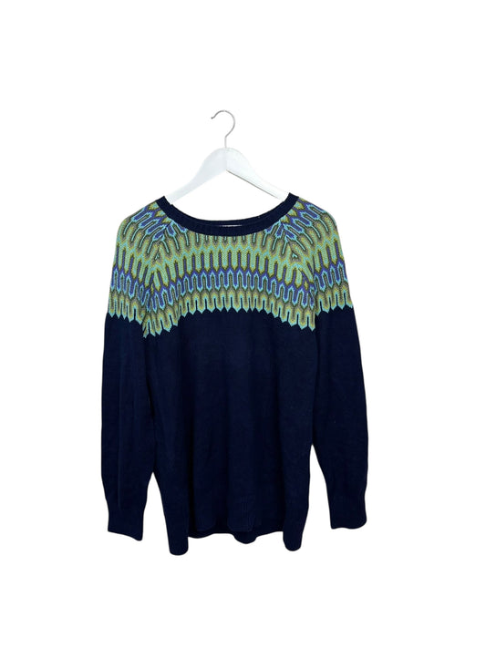 Vintage Navy Womens Geometric Zig Zag Fair Isle Crewneck Knit Sweater M