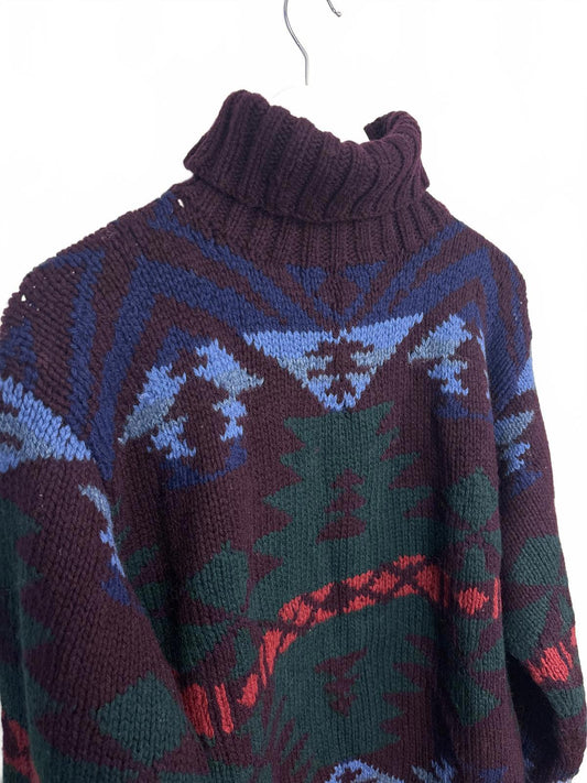Vintage Ralph Lauren Women's Turtleneck Multicoloured Sweater Medium