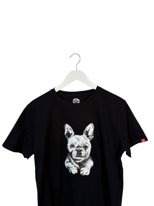 Raeek Japanese Mens Black Graphic T Shirt French Bulldog Print Size XL