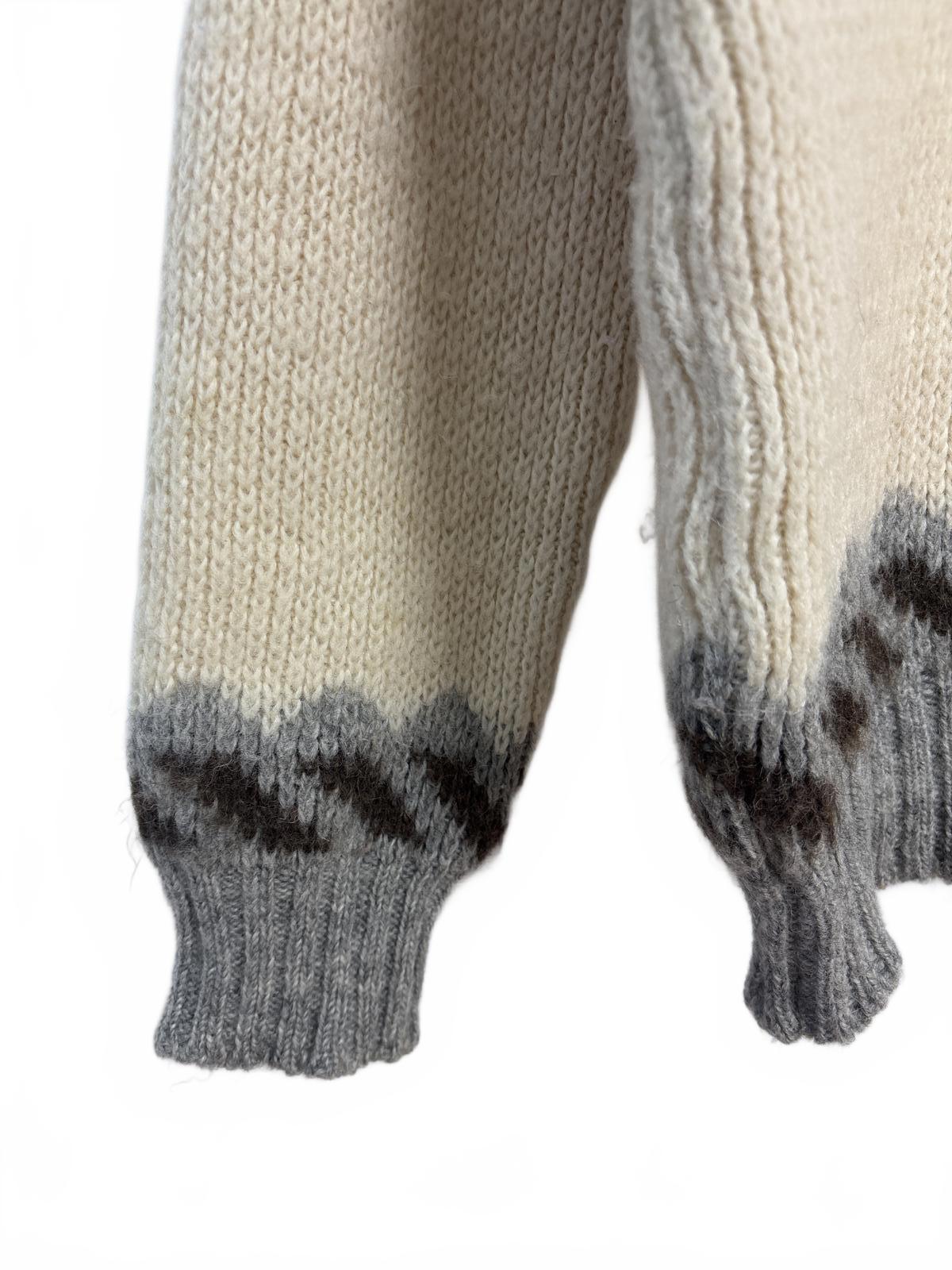 Vintage Brown Bison Women's Grey Cream Patterned Wool Sweater Medium