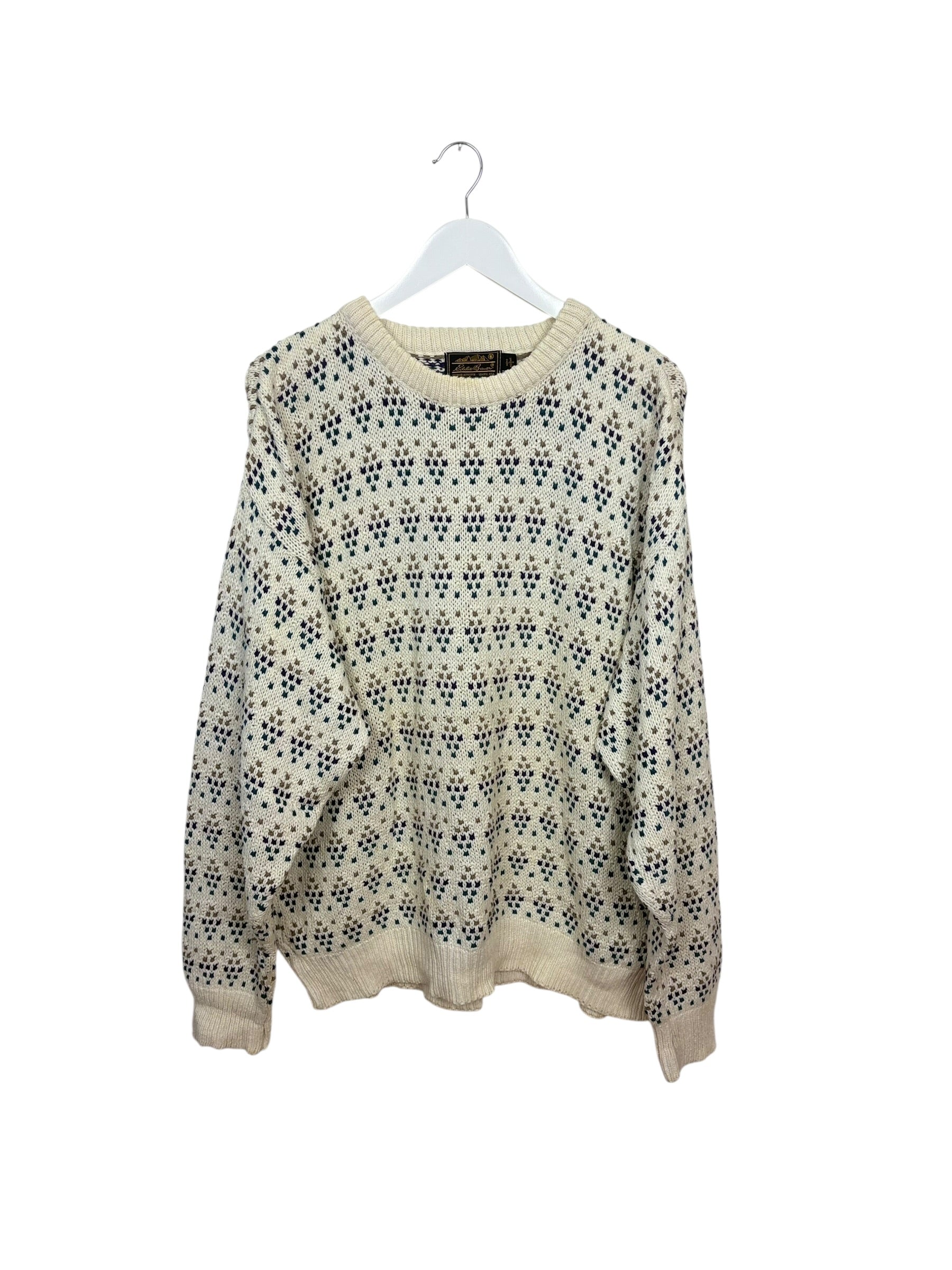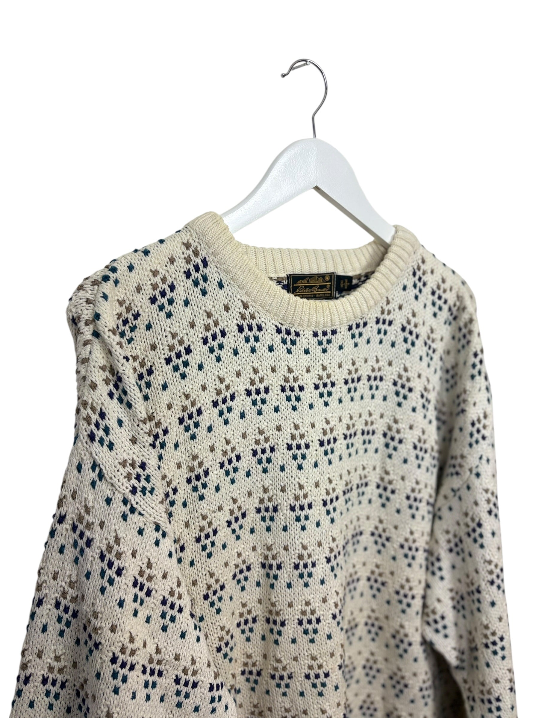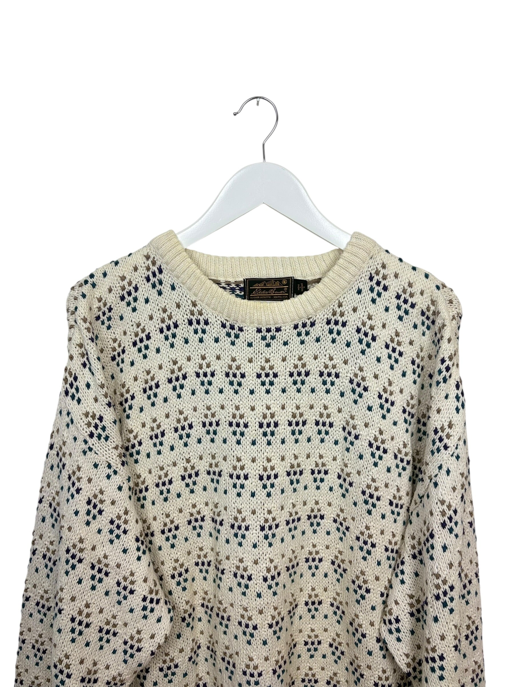 Vintage 90s Eddie Bauer Cream Geometric Knit Crewneck Sweater Size L